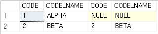 WHERE A.CODE IS NULL OR B.CODE IS NULL