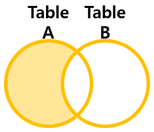 : A(=Left), B(=right) 기준을 어디에 두냐에 따라 기준 테이블 값 + 테이블과 기준 테이블의 중복된 값이 보인다.
