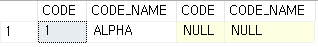 INSERT INTO A(CODE, CODE_NAME) VALUES(1, 'ALPHA')