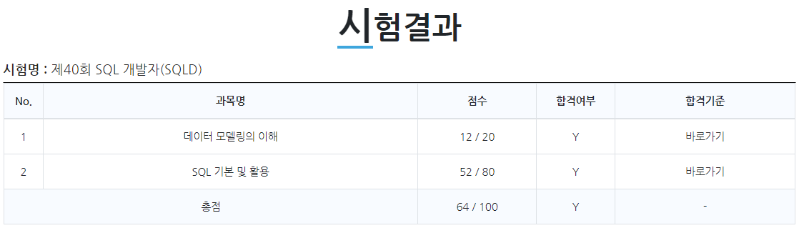 턱걸이의 점수지만 SQLD 준비과정을 먼저 겪어보고 시험을 치뤄본 입장에서 나의 생각을 공유하고 싶다.