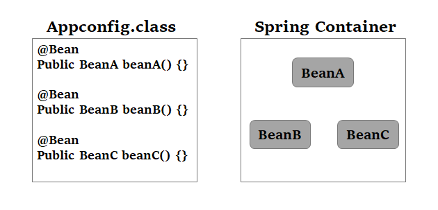 -. 스프링 컨테이너에 key: Bean name, value: Bean Object로 들어간다.