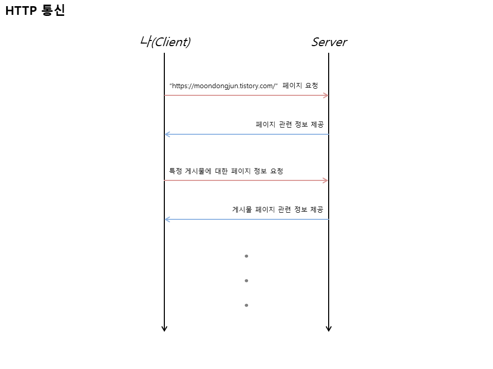 -. 클라이언트에서 서버로 Request를 보내고 서버가 Response하는 방식.