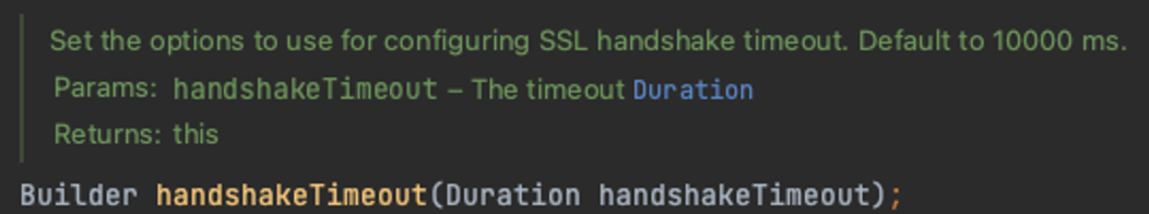 .handshakeTimeout(Duration.ofMillis(webClientProperties.getHTTPCLIENT_SECURE_SSL_HANDSHAKE_TIMEOUT_MILLIS()));