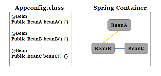 -. 스프링 컨테이너에 key: Bean name, value: Bean Object로 들어간다.
